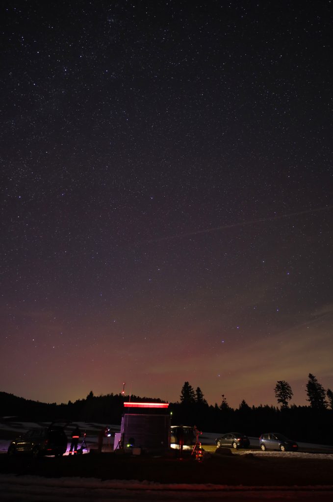 Die allsky-Kamera der staernwarte konnte in der Nacht vom 18. Januar zum 19. Januar Polarlichter über Gersbach einfangen.
